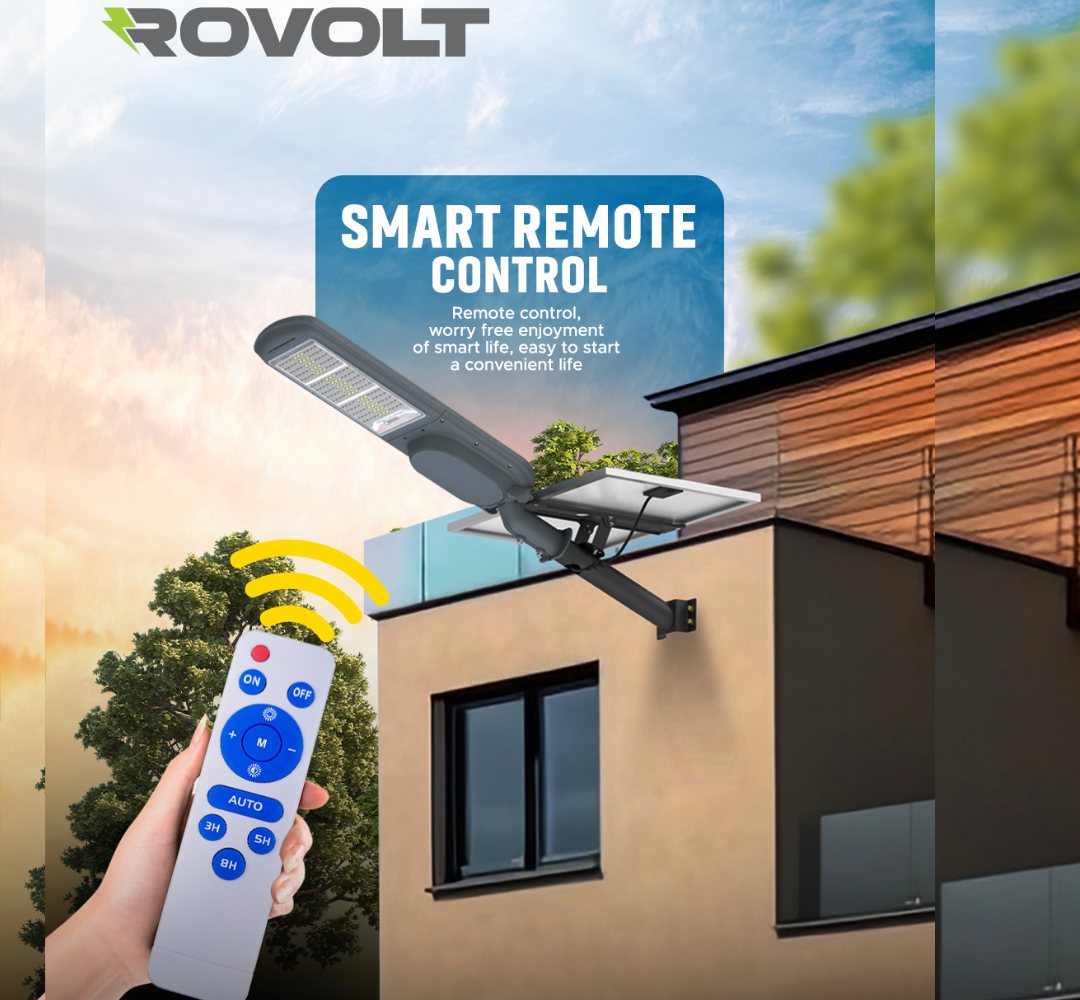 ROVOLT 200W LED Solar Street Light with Remote Control & Motion Sensor