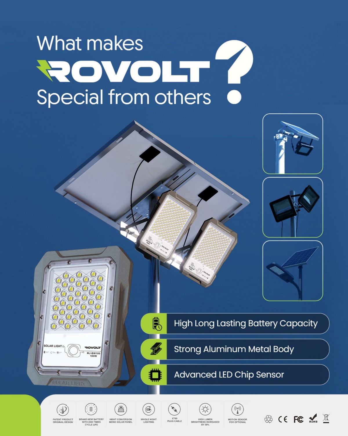ROVOLT LED Solar Flood Light 100W